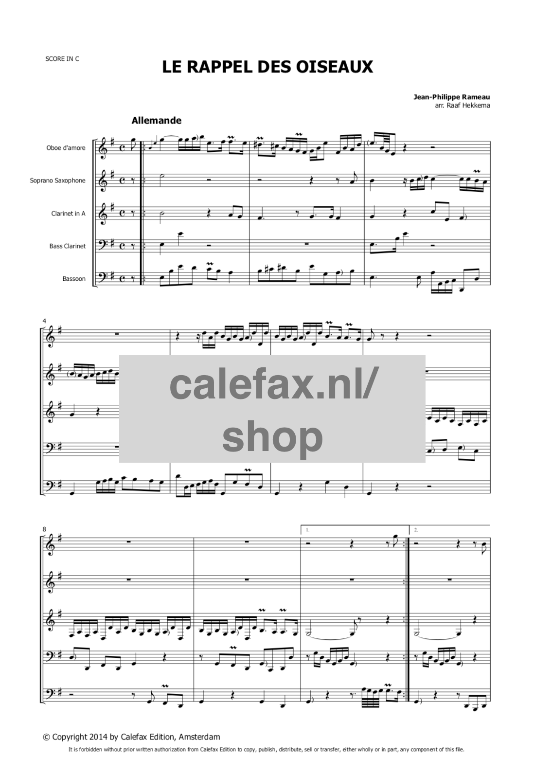 An audio example of the Allemande from Le Rappel des Oiseaux, performed by Calefax Reed Quintet: