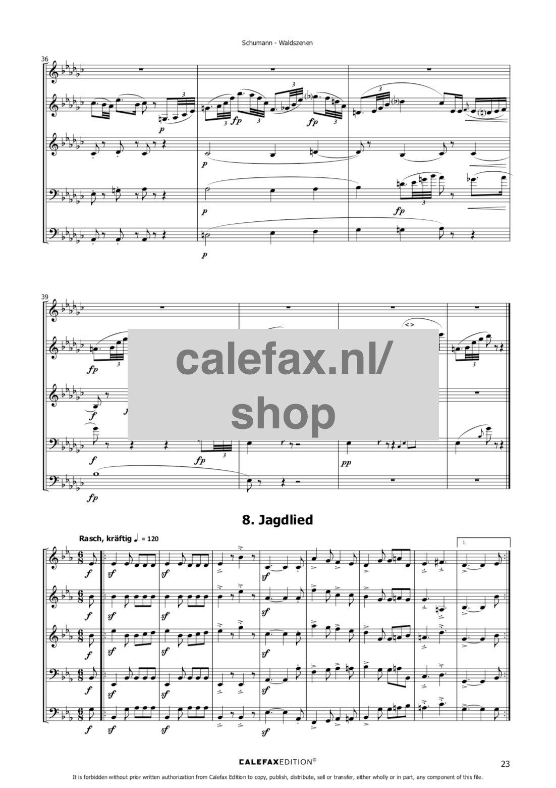 Audio example of ‘Jagdlied’, the second movement from Schumann’s Waldszenen, performed by Calefax Reed Quintet: